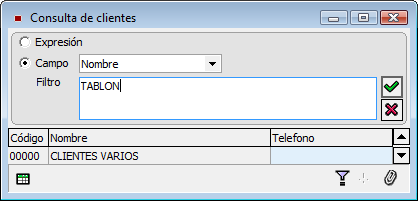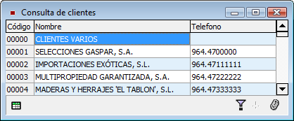 Si la pulsamos desde el mantenimiento de clientes -por ejemplo- se muestra la siguiente ventana :