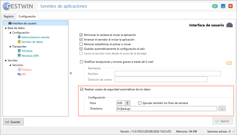 La última versión del servidor de GESTWINincluye un sistema automático de copias de seguridad concurrente.